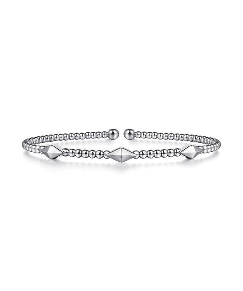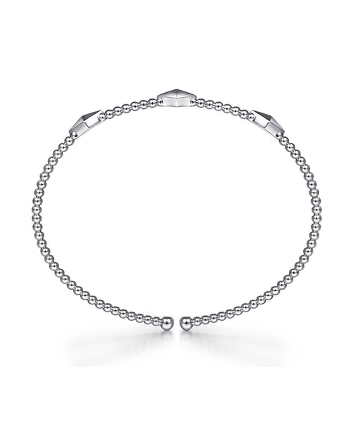 This 14k white gold bangle bracelet features classic Bujukan beads and three pyramids that can be worn with other Bujukan bangles! Size 6.25