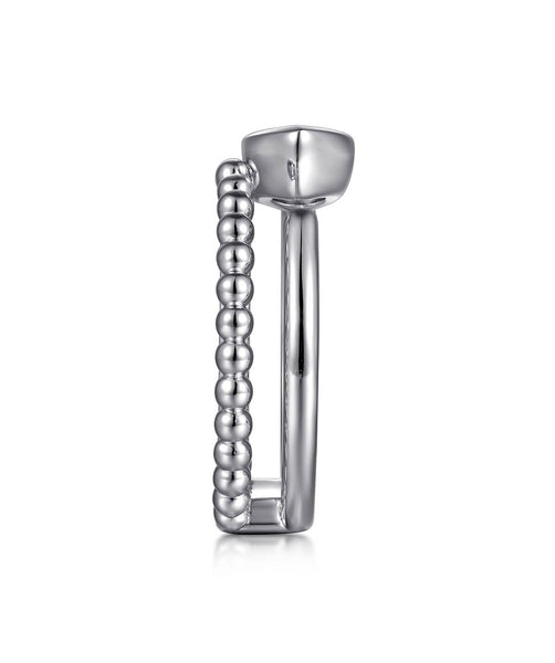 A natural pear garnet is bezel set and features classic Bujukan beads accenting both sides. Size 7.