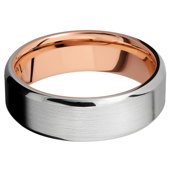 7 mm wide Beveled Platinum band featuring a 14K Rose Gold sleeve.