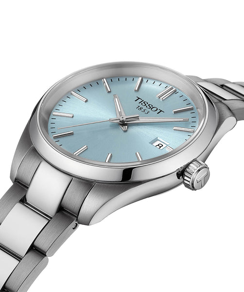 The Tissot Gentleman is the perfect accessory for everyday wear, bringing a touch of color to your style with its ice blue dial. This classical and elegant watch comes with a case diameter of 40 mm. The satin-finished and polished hands and indexes complete the elegant look of this TissotGentleman. This model is equipped with a Swiss Made Powermatic 80 movement, scratch-resistant and anti-reflective sapphire crystal and a 316L stainless steel case.
