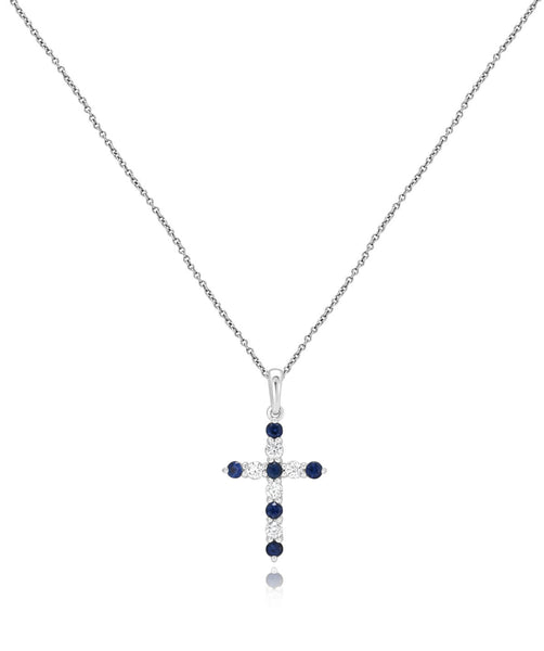6 natural round sapphires and 5 natural round diamonds are prong set in this 14k white gold pendant. Chain sold separately.