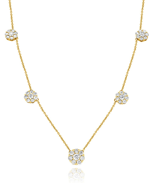 40 natural round brilliant cut diamonds are prong set in clusters and set in 10k yellow gold. Length measures 18 inches.