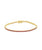 84 lab grown round red rubies are prong set in this 14k yellow gold tennis bracelet. 7.6 inches