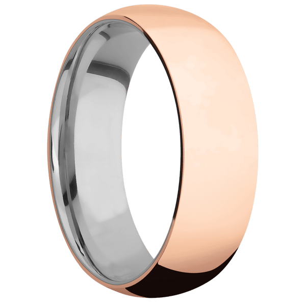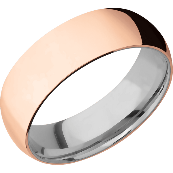 7 mm wide Domed 14K Rose Gold band featuring a Titanium sleeve.