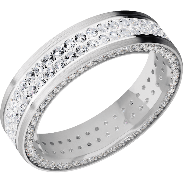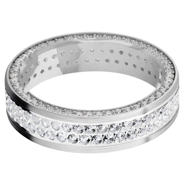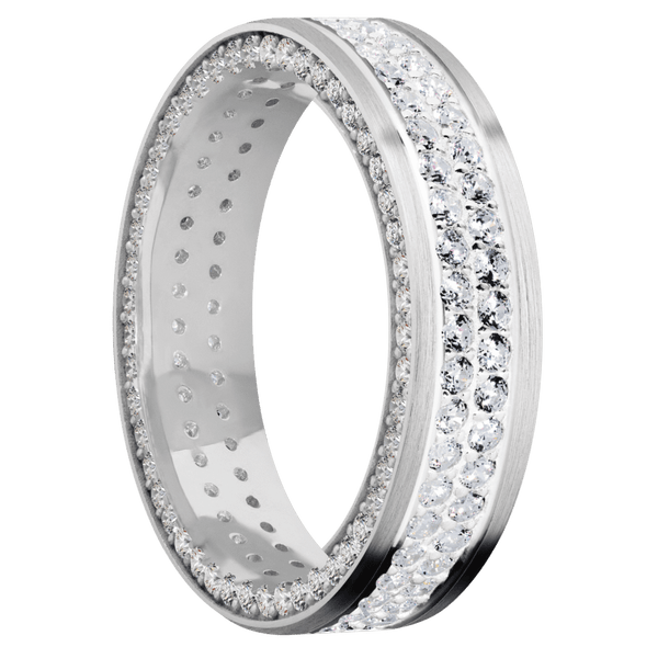 6 mm wide/Flat/Cobalt Chrome band with a Side Eternity arrangement of .01 carat Round Lab Grown Diamond (ST) stones in a Bead setting and featuring a a 2 Row Eternity arrangement of .015 carat Round Lab Grown Diamond (ST) stones in a Bead Channel setting