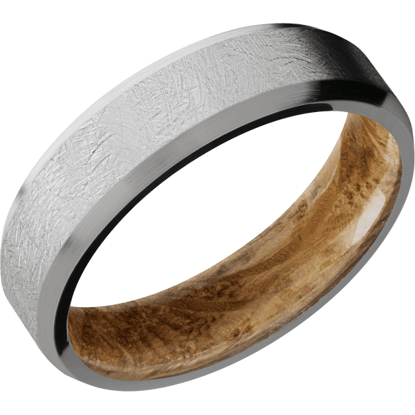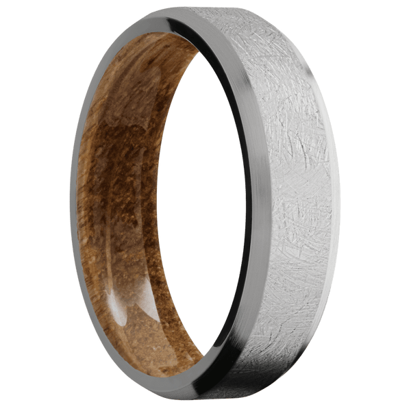 6 mm wide Beveled Titanium band featuring a Whiskey Barrel sleeve.