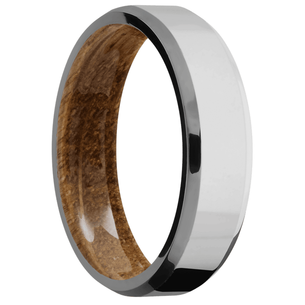 6 mm wide Beveled Titanium band featuring a Whiskey Barrel sleeve.