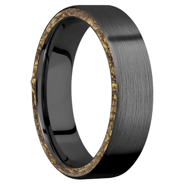 6 mm wide/Flat/Zirconium band with two 1 mm Side inlays of Alaskan Gold Nugget.